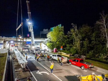 The use of a crane also required Superior to coordinate closely with officials at nearby Jacksonville International Airport. Superior’s project team developed a comprehensive traffic control plan to ensure safety and minimize disruptions at the busy interchange.